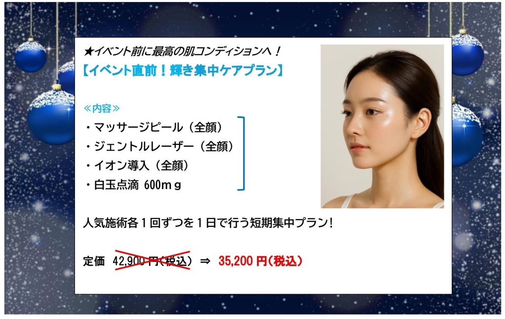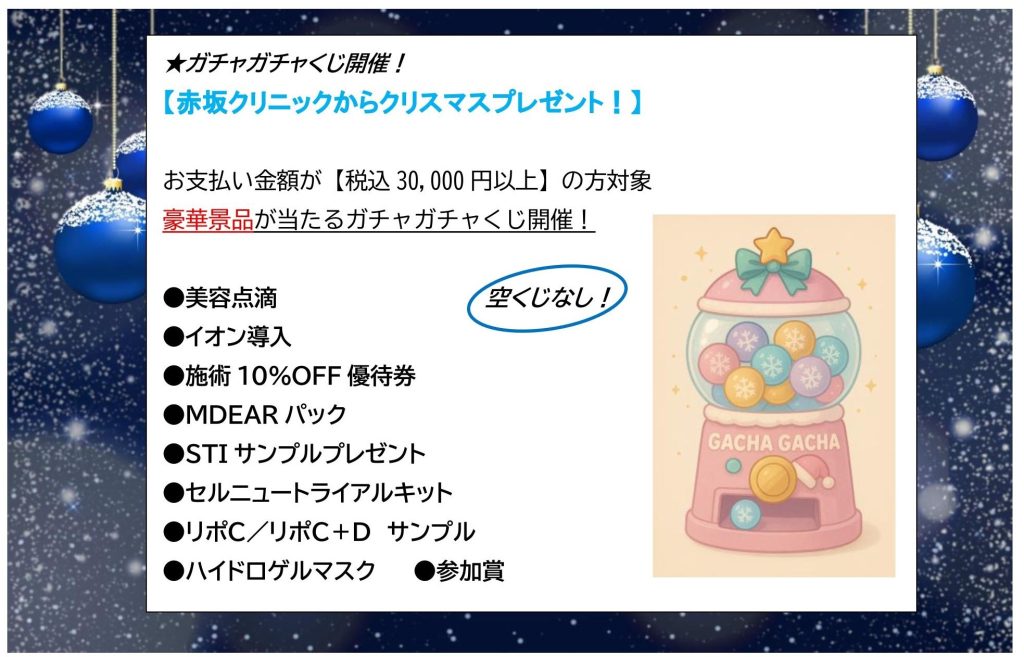 赤坂クリニックでは期間限定で、【クリスマス特別企画】を開催します。